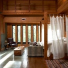 Най -простият вариант за зониране на пространството е балдахин или завеса. Те също толкова добре ще се справят със задачата и ще скрият мястото за спане от гостите.