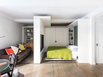 Разбира се, комбинираният хол-спалня не е точно това, което средното семейство иска. Но ако няма друг изход, тогава планирането в полза на свързването на двете зони е най -прагматичният и логичен изход от ситуацията..
