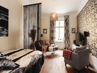 Зонирането на стая е най -добре с гранична бариера. Например всеки има отдавна известен метод – преграда, която при желание ще скрие интимната част на стаята от любопитни очи.