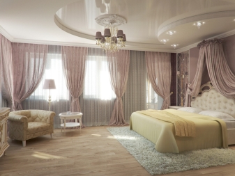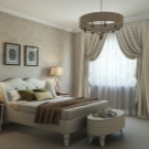 Спалнята не е пълна без завеси. Дизайнерите съветват да ги окачите по -близо до тавана, дори ако имате много малък прозорец. Такава проста техника ще помогне за визуално увеличаване на височината на таваните в спалнята. И дизайнът на стаята ще изглежда стилен и завършен. Прикрепете завеси с пердета. Тази година експертите предлагат да се изберат завеси в светли нюанси.. Те могат да бъдат изработени от плат (коприна, лен). Благодарение на текстурата и цвета, можете успешно да увеличите пространството, да придадете на помещението повече лекота, чистота, ефирност.