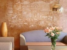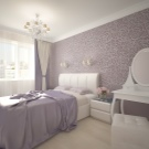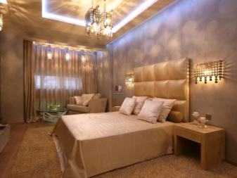 - Специална текстурирана мазилка. Може да е с искрящи частици. Този материал ще добави шик и привлекателност към вашата спалня. Този завършек обикновено се поставя в главата на леглото. Можете също да използвате дизайнерски тапети със сложен релеф. Тази декорация на стена ще изглежда добре със специален полилей с кристални декорации. Този интериор ще изглежда доста тържествен и празничен. Ще се почувствате като крал или кралица.