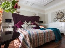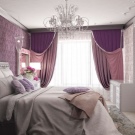 Може успешно да се приложи в дизайна на спалнята и цвят боровинка. В този случай не можете да боядисате напълно цялата стая, но например да създадете ниша. В стила на минимализма той ще се превърне в един вид ярък акцент. В същото време леглото може да бъде направено в сиви нюанси. За да не изглежда стаята мрачна, си струва да добавите оригинално декорирани предмети и лампи с бели абажури. Разбира се, когато планирате стая, трябва да използвате цветовата схема, която ви харесва. В същото време експертите съветват да се използват не повече от три нюанса. Струва си да си припомним, че основният тон трябва да е лек. Ако искате да внесете яркост в спалнята си, тогава можете да направите това с текстил – например драперии. Много хора използват оригинални интериорни предмети..