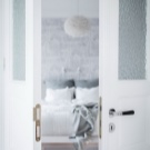 - Дървени. Те са най -добрият избор. Има много различни опции за всеки вкус и портфейл. С помощта на такава врата можете да направите интериора по -консервативен или да добавите модерност към него. Дървените врати имат добри звукоизолиращи свойства, което ги прави отличен вариант за спалнята.