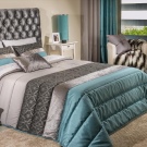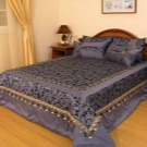Купуването на текстил за рамка на леглото също е важно. Обърнете внимание, че одеялата, покривките, декоративните възглавници се комбинират и отекват с общия интериор на стаята. Не забравяйте, че е добра идея да направите един от тези декоративни елементи семантичния център на композицията.. Добавете цвят или модел, за да създадете силен контраст с останалата част от спалнята. В резултат на това ще получите интересен ефект.. Предимството на този подход е, че можете да сменяте текстил от време на време, освежавайки стаята и променяйки цветовия център, а това ще ви струва сравнително малка сума пари..