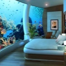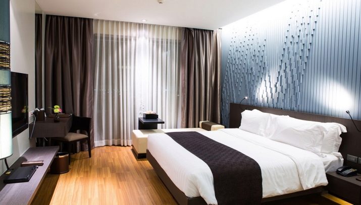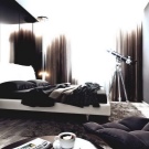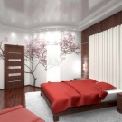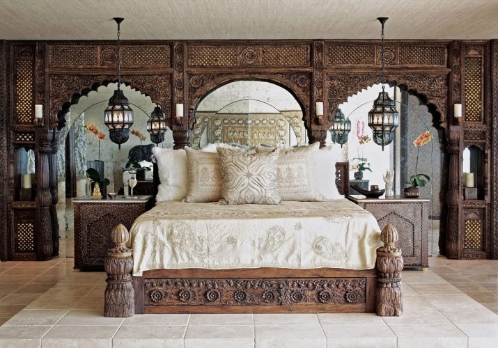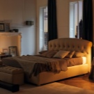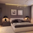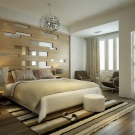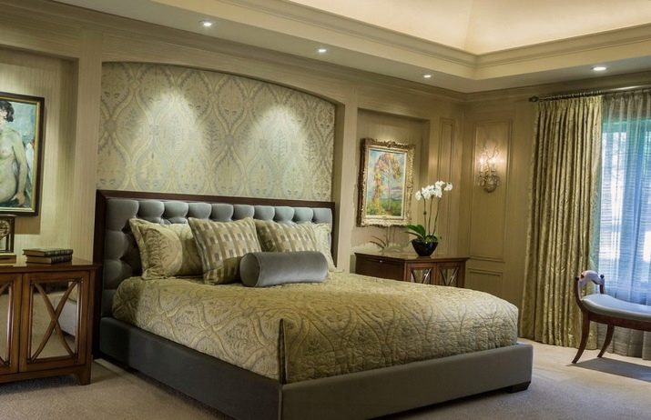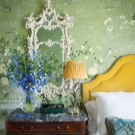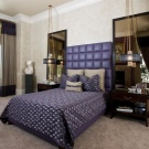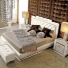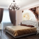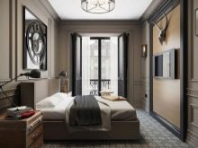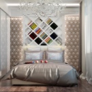 - Ценителите на изкуството ще харесат този интериор, където всяка мебел е шедьовър сама по себе си. Че има само мека табла с размерите на цялата стена! Необичайна лампа за маймуни и огледално нощно шкафче придават още по-изтънченост на обстановката, докато декорациите под формата на кристал и огледало с необичайна форма поставят необходимите акценти. Умишлено екстравагантни елементи като необичаен искрящ полилей или кожено одеяло придават на интериора бляскав и бохемски вид.