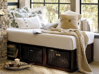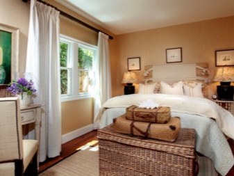 Обърнете внимание на материала, той трябва да е достатъчно плътен, така че завесите да не пропускат светлина, в противен случай съществува висок риск от безсъние поради светлината, която удря очите ви през нощта. Отделно се погрижете за закупуването на специални кутии за съхранение на малки предмети. Това могат да бъдат малки стилни кошници, кутии, корици – каквото и да е. Важно е да имате предвид този момент, тъй като способността да се допълни съдържанието на рафтовете е важна част от създаването на характера на спалнята. Също така наличието на такава система за съхранение ще ви позволи да намалите времето за почистване на помещенията, което, разбира се, е абсолютен плюс..