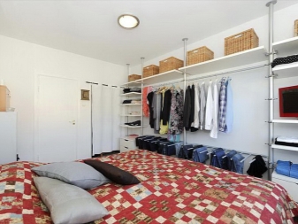 Ако няма достатъчно място за инсталиране на шкаф, помислете за закупуване на скрин.. Той заема много по-малко място, а по отношение на функционалността отстъпва на пълноценен гардероб само на няколко. Скринът може да бъде избран във всякакъв размер. На пазара има огромен брой различни възможности за дизайн на тази мебел за всеки вкус, така че няма да има проблеми с избора. Основното нещо е да запомните, че всяка мебел трябва да бъде закупена в съответствие с концепцията за стила, в който планирате да оборудвате спалнята..