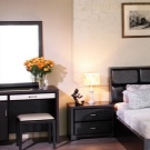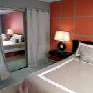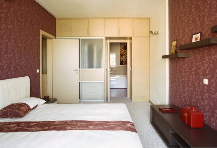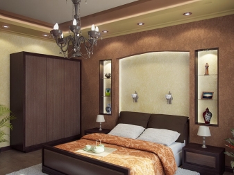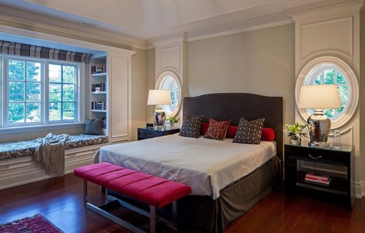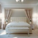 Нощен пуф – не е толкова рядко. Има огромен избор от различни варианти на пуфове за всеки вкус и цвят, така че изборът на правилния не е труден. Не забравяйте да се запитате дали има място за килер в спалнята. Ако апартаментът има отделна съблекалня, добре, но ако имате нужда “Enter” гардероб в интериора, могат да възникнат определени трудности. Например, невъзможно е да изберете гардероб за античен интериор; ще трябва да се задоволите с класически резбовани ленени гардероби или скринове. Ако проектирате спалня в модерен стил, разгледайте по-отблизо опцията за вграден гардероб. Някои модели имат огледални врати, което ще спести място в стаята, както и пари за закупуване на самостоятелно огледало.