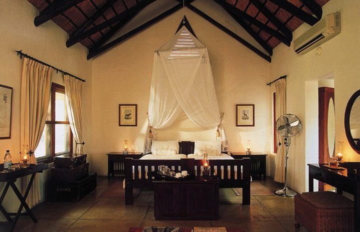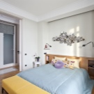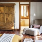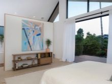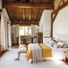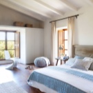 - Интериорът на тази спалня, разположена в къща край морето в Майорка, вдъхва комфорт, свежест и спокойствие. Ненатрапчиви петна от етнически модели са вписани в много елегантна обстановка. Гредите на тавана, комбинирани с дървени мебели, карат посетителите да се чувстват като на борда. Ярък акцент под формата на футуристичен стол привлича вниманието поради своята “Неподходящ” спрямо останалата част от околната среда обаче подобен ход помага да се направи интериора по -оживен и динамичен.