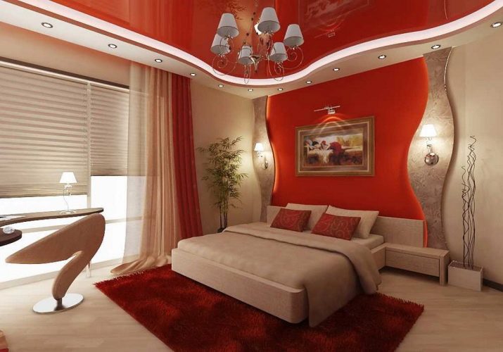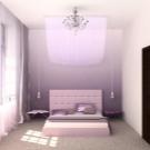 Когато декорирате стая, помислете за три основни компонента: таван, стени и подове. Най -актуалните в момента са опънатите тавани. На пазара има огромно разнообразие от всякакви цветове и текстури. Можете да създавате едноетапни и многостепенни структури, да добавяте прожектори и т.н. За малките стаи най -добрият избор би бил лъскав светъл таван, който ще помогне за добавяне на светлина и също така визуално ще разшири пространството. При ниски тавани трябва да се даде предпочитание и на леко покритие. С негова помощ стаята ще изглежда по -просторна и по -висока. В допълнение, тъмният таван на подсъзнателно ниво създава тревожно усещане, така че е силно обезкуражено да го използвате в спалня..