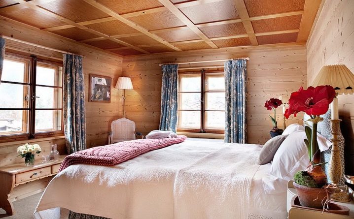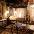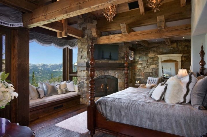 - Стаята, чийто интериор е направен в стила на средновековен замък, е красиво вписан в хижа в гората. Необичайно в този случай е използването на камина в зоната за спане. Причудлива фигурка във формата на изсушен клон на растение предизвиква мисли за еленови рога, което ви позволява да изпитате напълно духа на стаята. Ако обаче се вгледате по -отблизо, ще забележите, че интериорът е направен в модерен стил, осеян с традиционни материали и орнаменти. Като цяло стаята изглежда много впечатляваща..
