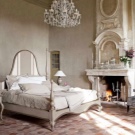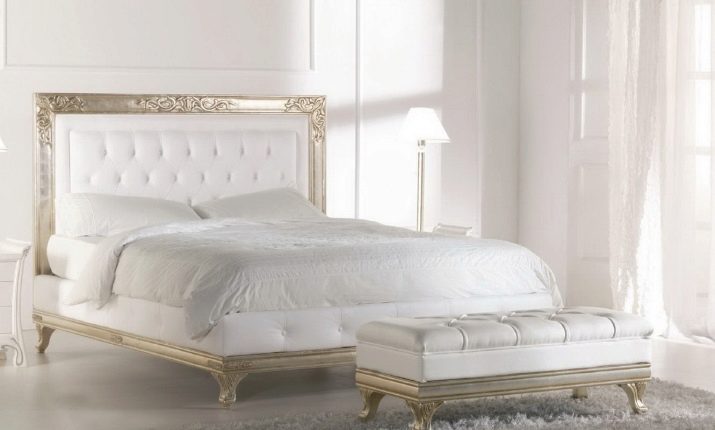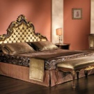 Традиционните антични легла имат извита табла, но можете да намерите и модели с плоска версия. Отличителна черта е наличието на резбовани части и позлатени облицовки.