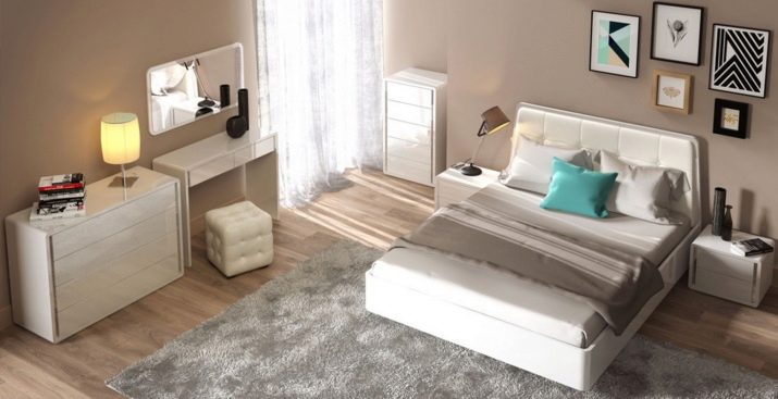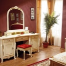 Когато планирате дамска спалня, не забравяйте да закупите тоалетка. Можете да изберете опцията с или без вградено огледало, както и маса с допълнително осветление за повече удобство по време на нанасянето на грим. Заедно с масата обикновено се купува пейка, която е малка табуретка за тоалетка. Най -хубавото е, че когато пейката и нощното легло имат подобен дизайн, тогава интериорът на стаята като цяло изглежда по -хармонично..