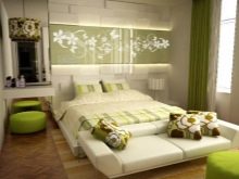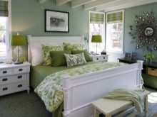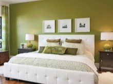 - Спалнята изглежда интересна светлозелени или маслинови стени. Те създават усещане за хармония с природата. Особено ако пейзаж е изобразен на зелен фон..