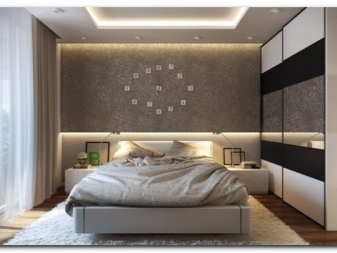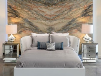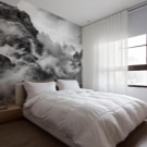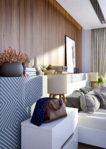 Фино довършване може да се извърши с керамични плочки, тапети, фототапети, стенни панели или боя. За спалня използването на плочки е неприемливо, така че трябва да избирате между други методи..