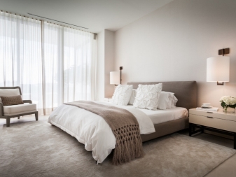 - Бежово, бяло и сиво тонове ще отговарят на почти всеки интериор. Но кафявите стени ще създадат усещане за натиск, така че те не се вписват в спалнята..