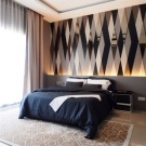 Обикновено акцентът е върху стената срещу входа на спалнята.. Не е нужно да избирате цялата повърхност наведнъж, а да подчертаете само някои места: издатини, ниши, зоната около леглото:
