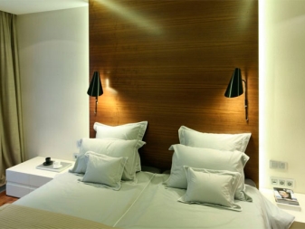 - Попълнете празното пространство стенни лампи или бра. В допълнение към естетическите ползи, те ще станат допълнителни източници на светлина. Например лампа над главата на леглото ще добави светлина за удобно вечерно четене..