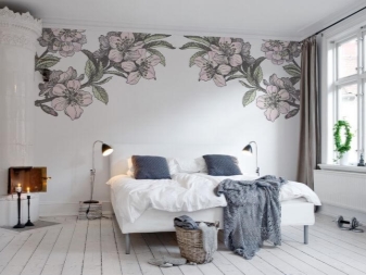 Творческите хора са способни да направят дори най -скучната стая произведение на изкуството. Така че някои украсяват повърхностите на стените с изображения на сакура, цветна поляна, звездно небе. Всичко, на което е способно въображението, може да се покаже по стените на спалнята. Ако няма специални творчески способности, тогава можете просто да нарисувате красиви модели..