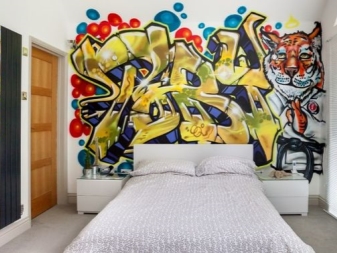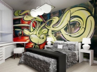 - Хитът на съвременната младеж са графитите. Много млади двойки искат да видят необичайни стени в гнездото си. Графитите могат да въплъщават всяка фантазия, използвайки всеки цвят. Изглежда ефектно и необикновено. Освен това е много икономичен от финансова гледна точка..