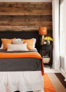 Интересна идея за спалня е дървената ламперия.. В идеалния случай ще скрие всички повърхностни несъвършенства и ще предпази стаята от външни звуци. Облицовката изглежда много хубаво и ако леко я нарисувате, можете да получите необичаен ефект.