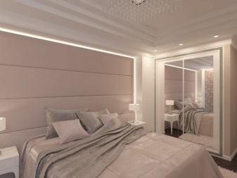 Всички стенни покрития трябва да са леки и да отразяват огледалото. Лампите трябва да висят по стените, а за оригиналност можете да инсталирате LED лента в ниша под тавана.
