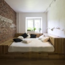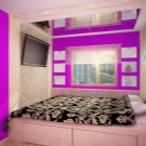 Легло с подиум е подходящо за тясна спалня – котата в стаята ще създаде желания квадрат и зонира стаята в зона за спане и място за почивка. Поставете подиум с легло по -далеч от входа на стаята. Хълм с вграден матрак трябва да бъде в задната част на стаята.