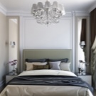 - Трудно е да се създаде в малка спалня класически стил и неговите подвидове (Английски, ренесанс, барок), тъй като такива опции изискват големи мебели и значителни площи. Ако спалнята е доста просторна (макар и малко тясна), тогава класиката има къде да бъде.
