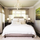 В тясна спалня можете да разположите леглото успоредно на дългите стени – така мебелите създават перфектната квадратна форма на стаята. Много е важно да има подходи към леглото от двете страни (поне половин метър), в противен случай ще бъде невъзможно да го напълните сутрин или да поставите нощни шкафчета. Ако спалнята е изключително тясна и толкова малка, че леглото е единственото обзавеждане, което ще се побере в нея, поставете я в ъгъла (най -отдалечен). Леглото в ъгъла изглежда доста уютно, а следващият ъгъл може да бъде зает с малък скрин или маса за съхранение на дребни неща..