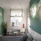 Можете да вземете един комплект текстил както за прозореца, така и за леглото. Кръгъл модел изглежда много добре в тясно пространство..