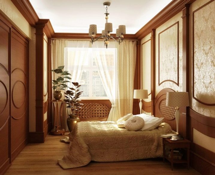 В тясна спалня трябва да използвате няколко цвята (и дори текстури) на тапета.. Дизайнерите препоръчват облагородяване на тясна стена с топли нюанси – бежово, жълто, кафяво. Те визуално приближават стената. Оцветете другите две успоредни дълги стени в студени цветове – мразовито бяло, сиво, синьо, лилаво (за визуално отдалечаване един от друг и разширяване на пространството).