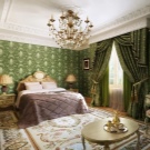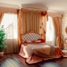 - Разбира се, не можете без доброто старо класика, което ви позволява да комбинирате задължителния за този стил ламбрекен, тежки завеси и лек, безтегловност тюл. Между другото, ламбрекенът може да бъде почти всичко: ажурно, драпирано, с много гънки и събирания или под формата на волан. Всяка от тези опции перфектно ще допълни интериора на спалнята..