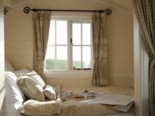 - Пример за това е връщането към модата селски стил със своята естественост и лекота. В рамките на този стил трябва да се даде предпочитание на естествени материали. Можете също така да добавите различни декорации-вложки като панделки, волани, бродерии и малки аксесоари (например копчета) към интериора. Завесите с такива елементи изглеждат много като домашни..
