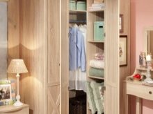 - Ъглов вариант. Както подсказва името, такъв гардероб ще бъде инсталиран в ъгъла на спалнята. Може да бъде вграден, монтиран в кутия и модулен. Много купувачи избират точно ъглови мебели, тъй като ги смятат за практични, компактни и просторни..
