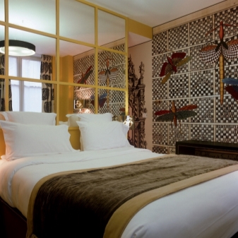 - декорирането с мозайки и плочки ще ви помогне да добавите подправка към вашата спалня. Изберете декор с причудливи шарки, за да създадете интересен акцент в стаята. Такива материали не изискват специални грижи, затова са много лесни за използване;