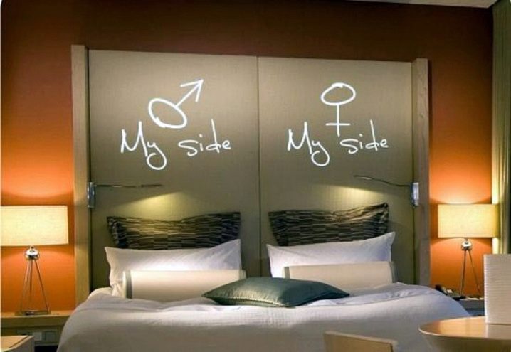 - стенописи, винилови стикери, необичайни тапети и фототапети ще помогнат за хармоничното създаване на интериора на вашата спалня. Обърнете внимание на интересни и ненатрапчиви истории, които отговарят на всеки стил. Много хора избират този метод на декор, защото е уникален;