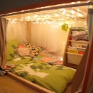 - наличието на рафтове и ниши над леглото ще добави функционалност и практичност към вашата стая. Тази опция е подходяща за тези, които обичат да четат преди лягане в леглото, както и за любителите да гледат телевизионни програми. Уверете се, че рафтовете са на удобна за вас височина. Не трябва да ги удряте с глава, когато седите на леглото. Изчислете необходимата дълбочина на нишите с рафтове, така че нещата да не падат върху главата ви;
