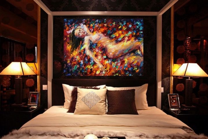 - най -добре поставете картината на нивото на очите си. Стилът и видът на рисунка трябва органично да се комбинират с интериора на спалнята. Например дизайнът, който е направен в бароков стил, не предвижда платно, изобразяващо мегаполис, а във високотехнологичните портрети с кралското семейство, както и фрески или сцени със средновековен лов, са неподходящи; Ако планирате да окачите няколко картини над главата на леглото, уверете се, че те са с еднаква форма и размер;