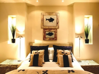 - наличието на рафтове и ниши над леглото ще добави функционалност и практичност към вашата стая. Тази опция е подходяща за тези, които обичат да четат преди лягане в леглото, както и за любителите да гледат телевизионни програми. Уверете се, че рафтовете са на удобна за вас височина. Не трябва да ги удряте с глава, когато седите на леглото. Изчислете необходимата дълбочина на нишите с рафтове, така че нещата да не падат върху главата ви;