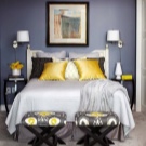 - когато избирате палитра с изображения, уверете се, че тя не е в ярък контраст с основния тон на спалнята. Най -добре е да изберете изображения, в които ще има повторение на няколко цветови схеми;