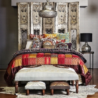 - с помощта на възглавници можете да създадете оригинален декор за главата на леглото. Можете да окачите цветни предмети или предмети със същия модел по цялата стена, вместо върху таблата. Броят на възглавниците зависи само от вашето въображение;