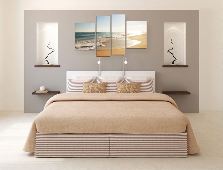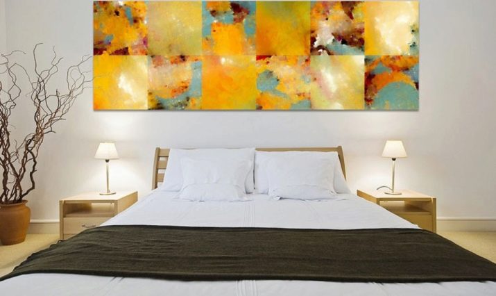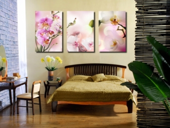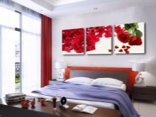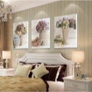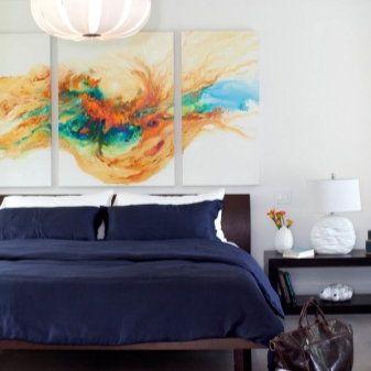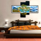 - безспорен хит на продажбите на стомана модулни композиции, когато един завършен сюжет е разделен на няколко отделни картини, които могат да бъдат различни по форма и размер. В спалнята е за предпочитане да се използва 2-4 част модул, защото по -голям брой ще изглежда като купчина и по -скоро ще наподобява художествена галерия, отколкото спалня;