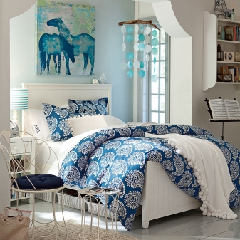 - за спалня на романтично момиче ще бъде подходящо мъниста гладка зелена поляна с диви цветя в лека полупрозрачна рамка;