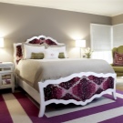 Класическата схема – спалня, декорирана в един тон, допълнена от друг подобен нюанс на килима. Основното тук не е да прекалявате, изберете един или два подобни цвята за основните и избягвайте рязък контраст (като на тигър например).
