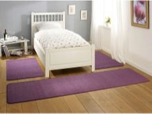Ако се задълбочите допълнително в тази тема, можете да разберете, че килимите дори имат свои собствени подвидове. Например песен. Пътеката за килими е удължен правоъгълник, който може да бъде с дължина до метър или малко повече. Това не е най -добрият вариант директно за спалнята, тъй като тази стая почти никога няма изразена удължена форма, но ще изглежда добре в коридора или на стълбите. Ако спалнята е вертикално малко по -дълга от хоризонталната, обърнете внимание на асиметричните килими – кръгли или подобни на кожата, които трябва да бъдат разположени само под задните крака на леглото..