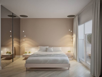 При избора на цветова схема за декориране на спалня се препоръчва да се придържате към златното правило: светлите цветове са изборът за спални на закрито, поради визуалното разширяване на пространството. Тъмни и плътни цветове в декорацията могат да си позволят само собствениците на къщи с просторни стаи..