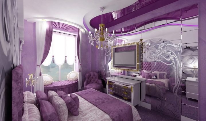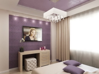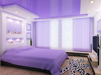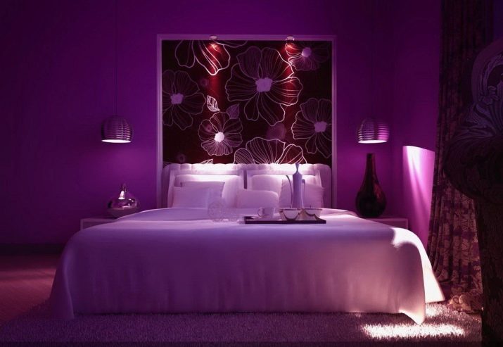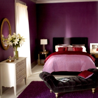 Лилавият цвят на спалнята е многостранен. Той включва много нюанси (лавандула, фуксия, патладжан, люляк, виолетово). Това определя стила и настроението на спалнята, създава определени впечатления..