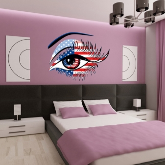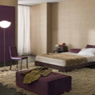 За да бъде хармоничен стилът, се вземат предвид всички детайли, чак до цветове и панели. Една от опциите за дизайн е виолетов тапет с шарки. Това е чудесна идея да промените стила на вашата спалня..
