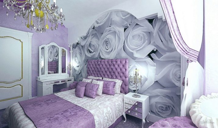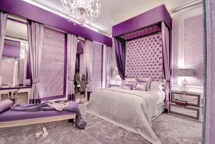 По едно време този цвят беше популярен сред държавните служители и аристократите. Той беше любимец на фона на спалнята, тоалети, интериори и дори декорации, символизиращи сила и статут. Този цвят е много популярен сред тези, които жадуват за самореализация. В зависимост от избрания нюанс, той идеално се вписва в различния стил на спалнята. Ако е избран деликатен тон, няма по -добър дизайн за класическа спалня. В допълнение към свежите нотки, стаята ще изглежда стилно и необичайно. Избирайки Hi-tech, те съчетават богати цветове и скромност на елементите. Като добавите златен спътник към лилаво, можете да претендирате за лукс и така нататък.. Дизайнерите често използват този цвят в арабски, необароков, поп арт, арт деко, минимализъм и блясък..