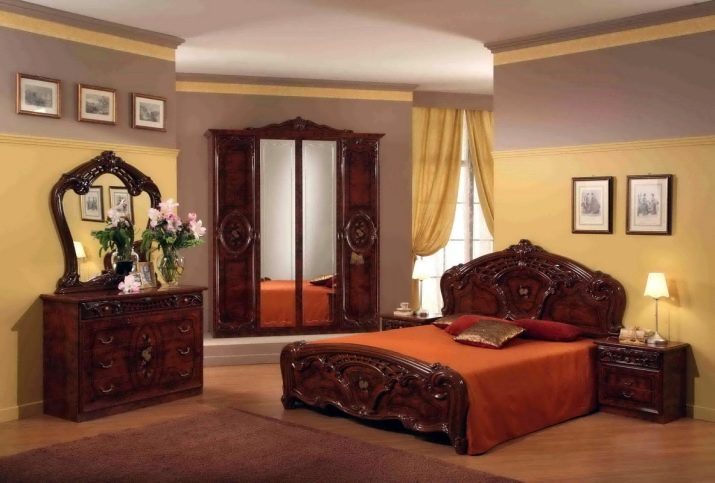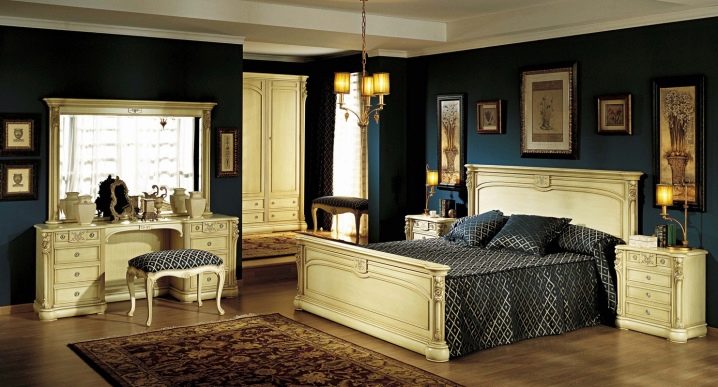 Струва си да говорим за комбинацията от цветове при избора на всички мебели поотделно. Можете да разчитате на вашия вкус и да вземете всичко поотделно. Така ще можете да създадете наистина уникален интериор, който напълно ще ви задоволи. Можете също така да поверите тази задача на професионални дизайнери. Евтина алтернатива на тази опция е да закупите готови слушалки, в които всичко е избрано предварително. Но ако искате да закупите всички мебели сами, тогава нека разгледаме основните правила за комбиниране на цветове, които ще ви помогнат да създадете хармоничен комплект за вашата спалня в класически стил..